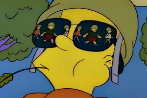 Terrorized by the school bully, Bart seeks counsel from Grandpa Simpson, who takes him to a warfare expert for basic training.