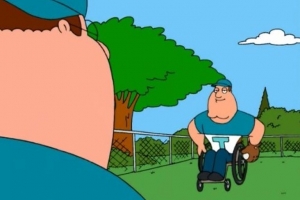 When the Griffin Family gets new neighbors that move in next door, Lois quickly becomes friends with Bonnie, Meg soon becomes attracted to their son, Kevin, and Peter becomes annoyed by the entire situation. After Peter injures the best player on his company's baseball team, Mr. Weed forces him to find a replacement, so Peter quickly changes his mind about his neighbors and invites Joe to play. When Joe shows up at the game, Peter learns that he is in a wheelchair. Joe ends up being the star of the game, which makes Peter jealous, as he wants to be a hero too. Peter ends up trying to stop a bank robbery to prove his value, but ends up getting caught up in the whole situation.