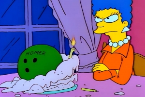 Homer's bowling-ball gift "for Marge" prompts her to take up the sport--and maybe also a handsome instructor who offers to teach her "many things."